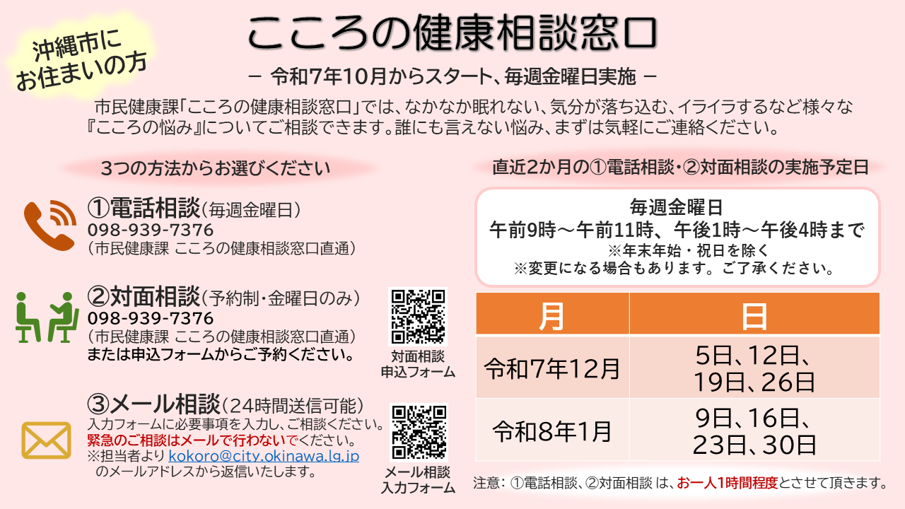 健康・福祉 こころの健康相談窓口の日程