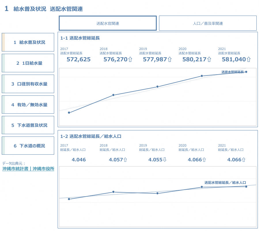 | 沖縄市統計書「1.土地および気象」を可視化しました。 | 沖縄市統計書「2.人口」を可視化しました。 | 沖縄市統計書「3.労働力」を可視化しました。 |
