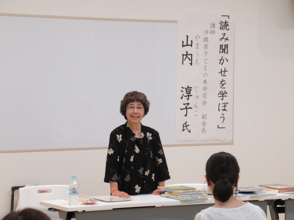 内容:沖縄県子どもの本研究会副会長である山内淳子氏に、絵本の読み聞かせを通して平和を伝える効果的な読み聞かせの方法や、平和の絵本の読み方講座を行っていただきました。