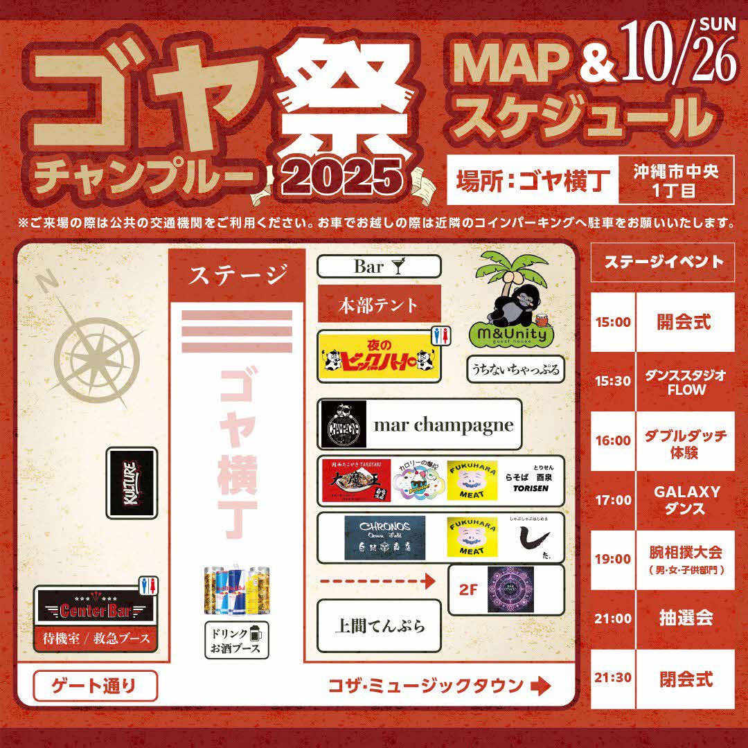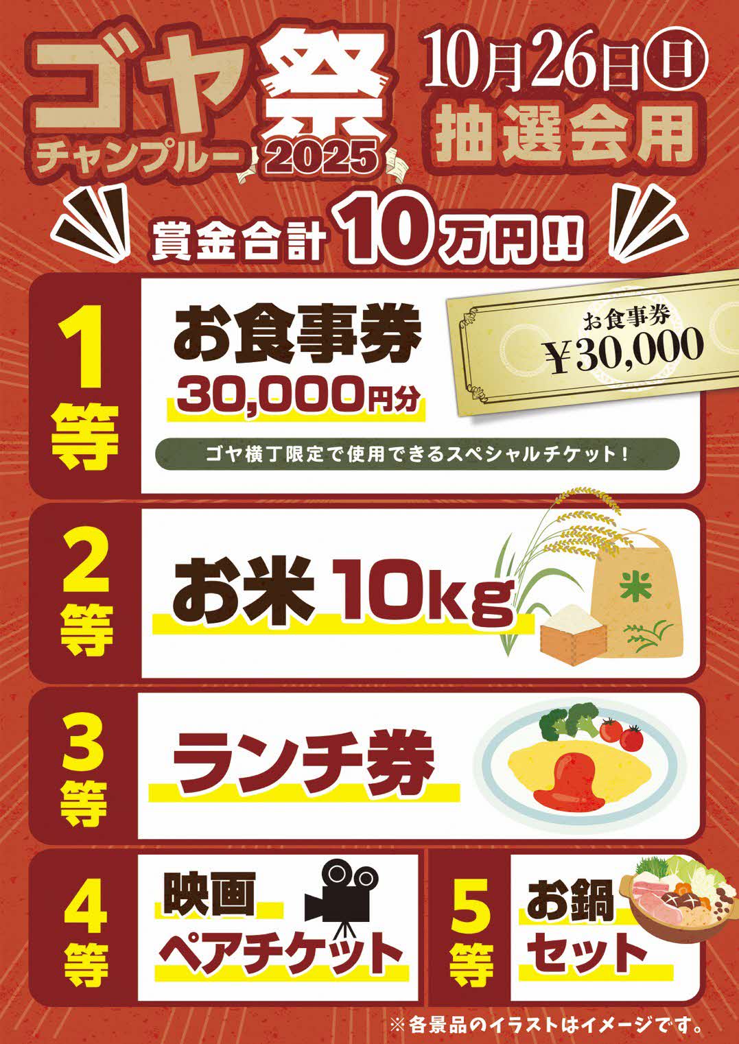 ゴヤチャンプルー祭が開催されます。ステージイベントやフィナーレには豪華景品が当たる大抽選会もあります。