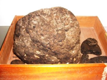 廃油ボールは、船を掃除した時に、海に捨てられる重油などの油が、海の中で固まってできたものです。復帰前はきれいな浜に廃油ボールが転がっているのがよく見られました。