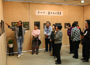 第一回の写真展が、沖縄こどもの国で開催されたことや、移動写真展も沖縄本島北部と中部の小学校で出来たこと、また、今年三月に市役所の一階市民ギャラリーで「第二回写真展」を開催し、今回のテーマ「道のある風景」桜道の今帰仁城跡やストックホルムの石畳のコントラスト、紅葉した落ち葉の山道などこれまで撮影してきた力作の中から一人六点を出品し計四十二点の作品を展示・紹介している。