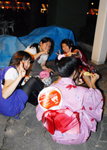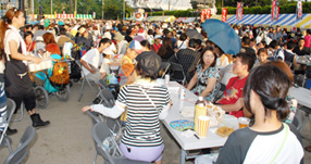 ![]() ▲はい、ピース、まつりで食べる食べ物はどれも格別うまい |