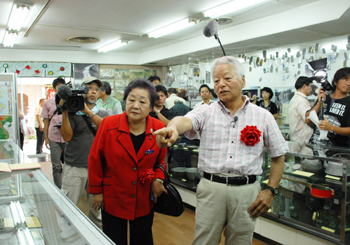 報道カメラマンの石川文洋さんや、「道具学会」の村瀬春樹さん、ゆみこ・ながい・むらせさんが市に寄贈した写真や道具などを常設展示した「市戦後資料展示室ヒストリート II 」が九月七日、パルミラ通りにオープンした。同日の式典には多くの関係者の外、石川さんも参加し、「基地の街として歩んだ沖縄市が平和の発信地になってほしい」と話した。東門市長は「展示室をとおして、戦後とは何か、地域の営みとは何かを考える機会にしてほしい」とあいさつした。展示は写真270点、戦後の道具610点、メンコ2200枚など。