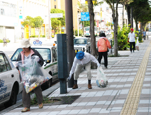 参加者たちは午前九時に一斉に清掃開始。小さなグループごとに各通りに分散してゴミを拾い集めた。約二時間近くの作業で収集されたゴミは各地域の集積場へ持ち寄られ、燃えるゴミと燃えないゴミ、ペットボトルなどに分別、今回の清掃で収集されたゴミは八一七〇kgにも及んだ。参加者たちは口々に「町がきれいになると気持ちがいい」などと笑顔で話していた。