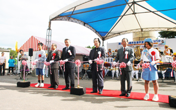 ![]() ▲泡瀬小学校の金管楽演奏と関係者らのテープカットで フェスティバルは華やかに幕開けした |