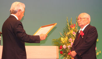 伊波孝仁(右)さんへ表彰状が贈呈された