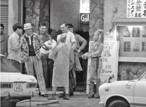 | 今月15日で、沖縄は日本に復帰して38年目を迎える。石川文洋氏は復帰の日の24時間、沖縄の様々な表情を追い、各地でシャッターを切った。 アメリカ世から大和世へ変わる1972年5月15日の午前零時に石川氏が那覇国際通りで撮影を始めた頃、本市ではコザ警察署(現沖縄署)が米兵のトラブルの絶えない歓楽街の取り締まりに出発。これまで民警察側は米憲兵隊に気兼ねしながら歓楽街を警戒していたが、同夜は民警察が捜査の主導権を握り、自信を持って取り締まりにあたった。しかし、いつもは米兵たちの歓声で賑わうセンター通りやゲート通りなどの歓楽街はひっそり。米兵も世替わりの瞬間を意識しているのか、復帰を記念して店の営業時間が一時間延長されたにも関わらず、殆ど姿を見せなかった。そのため大きな外人事件もなく、コザの歓楽街は新しい時代の幕開けを静かに迎えた。 写真は、石川氏が撮った復帰当日のセンター通りの様子。前夜は外出を控えていた米兵たちは通りへと繰り出し、街は活気づいている様だ。 賑やかなセンター通りだが、復帰後は円高ドル安の影響で衰退の一途をたどり、13年後の85年に邦人相手の中央パークアベニューへと変わるのである。 |