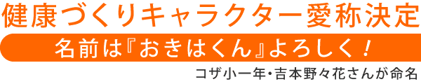 キャラクターはハイビスカスを付けたクバ笠をかぶり、半ズボンに島ゾーリ姿の男の子が元気よく笑顔で歩く姿を描いている。最優秀賞に輝いた吉本さんは、沖縄市の「おき」とハイビスカスの「は」を合わせて『おきはくん』と名付けた。今後は健康づくり関連事業のチラシやパンフレットなどの周知活動に『おきはくん』の愛称が使用される。優良賞の比嘉さんは、島ゾーリをはいて元気に走り回る健康な姿に『島ゾーリの健』と名付けた。東門市長は「市民の健康を守るため『おきはくん』を先頭に健康で元気のあるまちづくりを進めていきたい」と感謝の言葉を述べた。