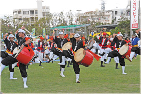 ▲力強いバチさばき華麗な手踊りが定評、エネルギッシュな胡屋青年会