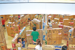 | ▲ヤギさん、ニンジン食べるかな | ▲巨大ダンボール迷路を進む |