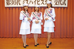 沖縄市観光親善大使ミスハイビスカスの交代式が四月十七日にNBC日本ブライダルセンターで行われた。