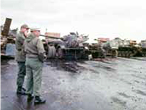 那覇軍港に運び込まれた損傷した戦車群。1969年