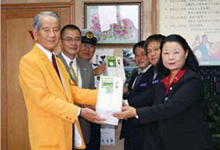 無事にカエル(帰る)という願いを込めて、沖縄地区交通安全協会宮城正光会長から沖縄市内16校の新1年生全員に、かわいらしいカエルの絵が描かれた交通安全反射付きキーホルダー1,618個が贈呈された。キーホルダーはランドセルなどに付けられ、夜間の車のヘッドライトに反射し、暗闇でも運転手に子どもがいることを知らせるもの。3月22日に行われた贈呈式で仲松教育長は「本市は細い路地も多いので、いただいたキーホルダーをきちんとつけ登下校に活用するとともに、横断歩道での左右の確認を徹底させたい」とお礼を述べた。