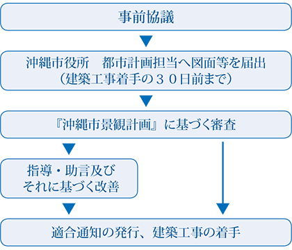 平成25年12月1日以降に一定規模の建物等の建築又は改築等を予定されている方(※建築確認申請書を提出済みの方は除く)は、景観法及び沖縄市景観条例に基づき、市に届出が必要となります。