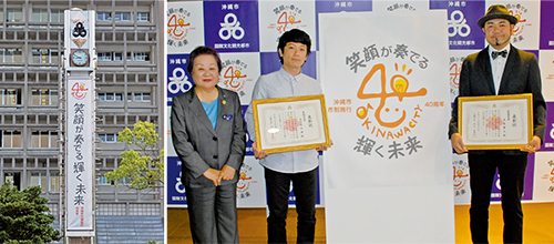 コザ市と美里村が昭和49年(1974年)4月1日に合併し、沖縄市が誕生してから40年目となる記念すべき日に、市役所1階の市民ロビーで市制施行40周年記念事業のキックオフイベントとしてキャッチフレーズとロゴマークに採択された最優秀賞者二人への表彰式が行われた。