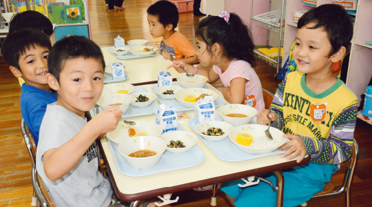 泡瀬・比屋根幼稚園で給食モデルを実施