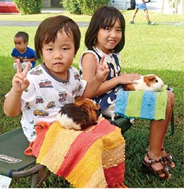 沖縄こどもの国は、ふれあい動物園を開き、来場者はウサギや羊、ヘビ、カメ、ひよこなどの動物とふれ合った。