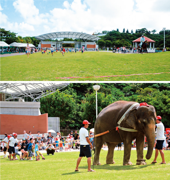 大運動会はサプライズで、インドゾウの琉花と綱引き対決が行われ、ゾウの怪力に驚きの声が上がった。また、『ゾウ飼育員さんに挑戦!ゾウのうんこ拾い』や『ウマに挑戦!与那国馬のかけっこ競争』など、動物との直接対決では普段感じることの出来ない動物たちの能力の高さや飼育員さんのお仕事に触れ、会場は大いに盛り上がった。