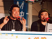 | ▲ ラジオ生番組、絶妙なトークで司会する津波しんちゃんと川満先生 |