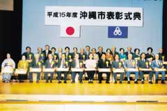 市の経済、文化、社会、その他各般にわたって市政発展に貢献し、市民の模範となる優れた業績を残された方々を表彰する平成十五年度沖縄市表彰式典が四月一日午後、市民会館中ホールで盛大に催された。 今年度表彰された方々は個人二十四人、二団体で仲宗根市長から一人ひとりに表彰状と記念品が贈られた。 式典で仲宗根市長は「本日、表彰された方々は、それぞれの部門で市の発展のために多大な功績を残された方々である。長年のご尽力、ご功績に対し深く敬意を表する。市は中部をリードする都市としての役割を認識し、諸施策に取り組んでいる。国際文化観光都市のさらなる発展のため、みなさんの豊富な経験と実績を今後も市へ寄せてください」とあいさつ。 被表彰者を代表して平良幸雄さんが「表彰は身に余る光栄である。賞がいただけるのも各関係者の力添えがあったればこそで、今後も数多くの実績を残してこられた方々と共に市発展のために精進したい」とお礼の言葉を述べた。 この後、祝賀会が行われ、多くの関係者らで祝福した。又、沖縄市琉舞協会、仲宗根文子舞踊研究所が踊りを披露、祝賀会に華を添えた。 被表彰者は次の通り 功労表彰(個人)〔市議会議員として十二年以上在職〕池原秀明、島袋勝元、比嘉清吉、与那嶺克枝、島袋善栄、高江洲義宏、佐久田朝政▼一般表彰(個人)〔産業・経済・土木・厚生・消防等に尽力〕勝田直志、平良幸雄、池原成佶、照喜名朝徳、比嘉美代子、仲宗根トヨ、崎原日出雄〔教育・体育・芸術・学術等文化の向上に寄与〕武藤初枝、仲宗根文子、當山フミ、玉城作子、與那城美代〔善行美徳の行為の模範〕島袋俊信▼感謝状(団体)〔公益のための寄附〕比謝川をそ生させる会・中根章会長、中部興産株式会社・新垣直彦(個人)仲本興成、佐久田朝政、知念権平、新垣喜盛(敬称略)。
