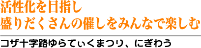 銀天街の活性化など充実発展に向けた「コザ十字路ゆらてぃくまつり」(主催・沖縄市銀天街商店街振興組合ほか)が十二月十三日、銀天街やゆらてぃく広場で行われた。