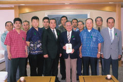 | 県民の県土緑化に対する理解と認識を高め、県民参加による緑づくりを推進することを目的とした「緑の募金」運動(県緑化推進委員会主催)。同運動へ賛同した6つの団体は4月30日、仲宗根正和同委員会沖縄支部長を訪れ募金を贈呈した。寄贈を受けた仲宗根支部長は「多額の寄付、心から感謝します。緑あふれるまちになるよう、有効に活用します」と謝意を述べた。寄付を行ったのは市建設業者会、市管工事協同組合、市土木コンサル技術会、市緑花会、市建築士事務所会、一善オートボディの6団体(順不同)。 | |