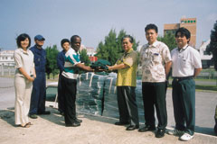 | 会員相互の親睦及び資質の向上を図り、郷土文化の発展と社会福祉増進のための活動を推進することを目的として発足した、市技能講師連盟。その定期総会がこのほど行われ、その席で新たに選出された平成十六年度の役員三名が五月十二日、挨拶のために市役所秘書広報課広報広聴係を訪れた。新たな役員には、会長に若柳賀寿乃さん(日本舞踊)、副会長に兼次幸子さん(木彫工芸)、書記会計に安里マサエさん(着物着付け)が就任、今後の活躍が期待される。 | |