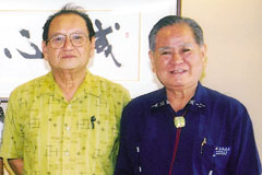 | 8月11日、「平成16年度沖縄県観光功労者」に選ばれた胡屋在住の備瀬善勝さんが、報告のため市長を訪れた。同功労者は観光客の誘致、宣伝または接遇の向上に功績のある者や観光資源の保護または観光地等の環境美化に功績のある者など、観光振興に特に顕著な功績がある者を対象としており、今回は個人11 名と5団体が選ばれた。備瀬さんはこれまで約37 年間、沖縄の音楽会の底辺を支え、音楽を通して観光振興に大きく貢献していることが評価された。 | |