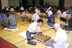 | 九月二十五日、市老人福祉センターかりゆし園で市老人クラブ連合会囲碁同好会と市役所厚生会との交流囲碁大会が開催された。昨年に引き続き二回目となる今大会に双方から三十四名の棋士が出場、実力ごとにAからFの六パートに分かれリーグ戦で腕を競った。結果、Aは藤田武正さん、Bは喜屋武馨さん、Cは大石盛亀さん、Dは伊計昭直さん、Eは平良重雄さん、Fは山内大州さんがそれぞれ優勝した。各パートの優勝者と準優勝者には米が贈られた。 | |