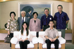 | 市民及び県民との交流を深める中から移住先国の発展に貢献しうる人材を育成し、本市と移住先との国際交流を図ることなどを目的として実施されている沖縄市海外移住者子弟技術研修生受入事業。平成16年度の同研修生に選ばれた久場・マリア・クリスティーナさん(アルゼンチン・21歳)と津波古・与儀・ロドルフォ・マヌエルさん(ペルー・21歳)の2人は9月30日に市長を訪れた。2人は9月21日から翌年2月28日までの約5ヶ月間、日本語や、漁業関係、沖縄文化などを学ぶ予定。 | |