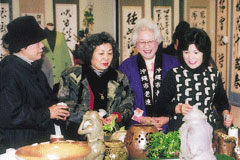 「継続」を合言葉に頑張っている南桃原日舞サークル(喜友名信子代表)の二十周年記念発表会「今ここと、ここからと」が二月六日、市民会館大ホールで開かれた。同サークルは踊りけいこだけでなく、子育ての情報交換や日舞をとおして精神的な向上を目指すこともかねている。又、老人ホーム慰問、祭りや地域行事への参加など二十年間を通して行ってきた。会場の市民会館は満席で、メンバーらは一生懸命けいこしてきた二十余りの演目を披露、会場から大きな拍手が鳴り続けた。 | |