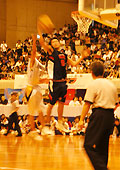 | 二日目はスリーポイントコンテストやダンクコンテストも行われた。 スピード・パワー、ハイレベルな試合が観客を魅了。福岡大大濠がみごと勝利を収めた。 | |