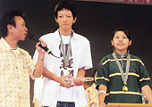 青少年ミュージックフェスティバル決勝大会には六バンドが出場、それぞれが個性ある演奏を披露。審査の結果、北谷高校一年のアコースティックデュオ「CA」がグランプリに輝いた。 |