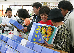 『あまSUN』(柑橘品種「天草」)の誕生祭が十二月五日、登川のファーマーズマーケット「ちゃんぷるー市場」で開催された。